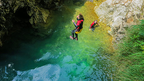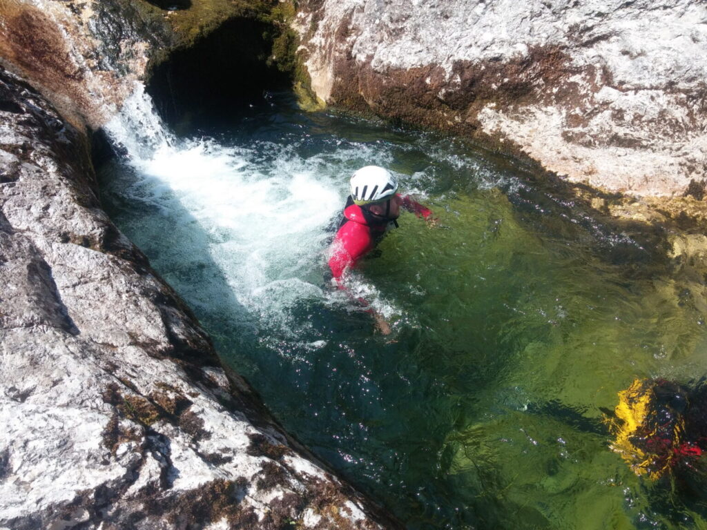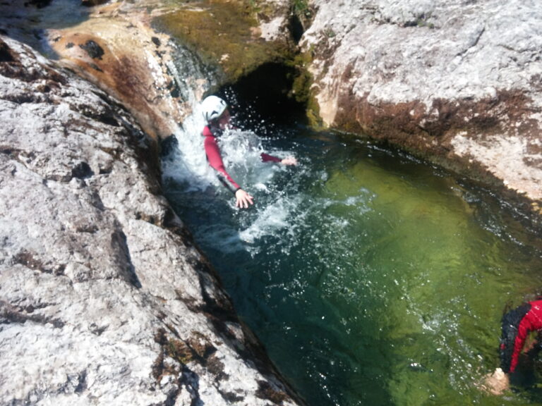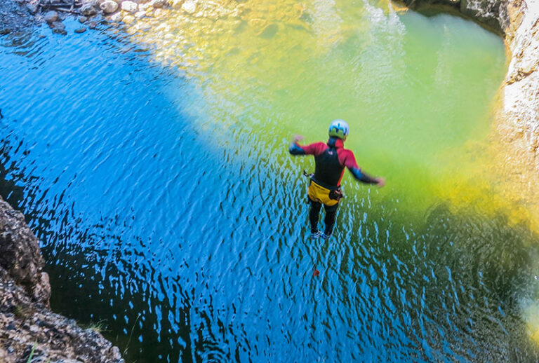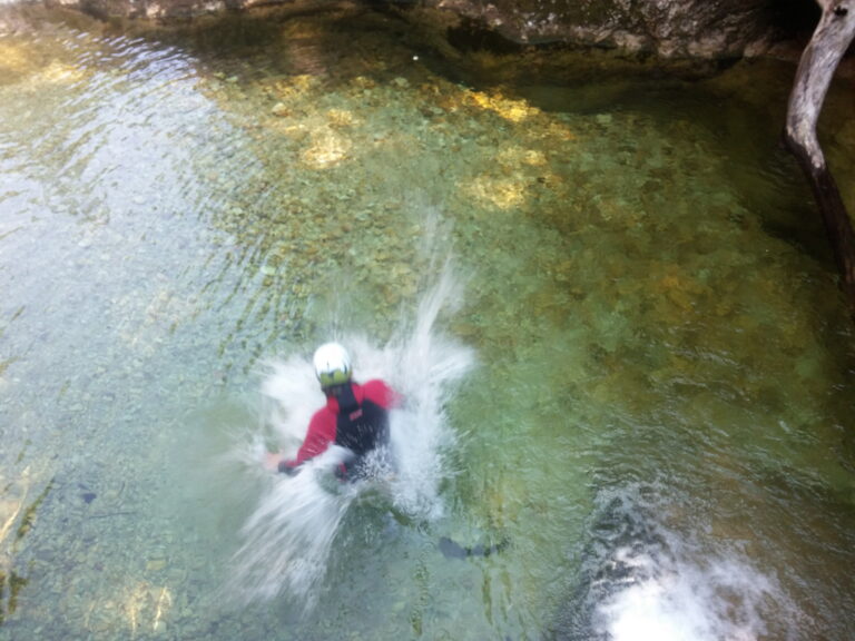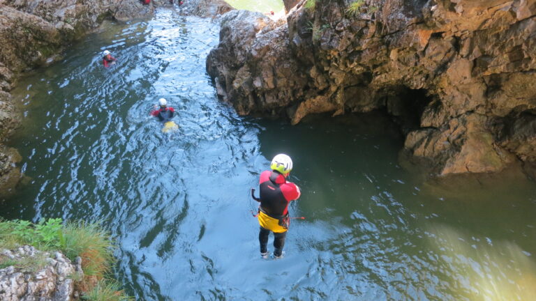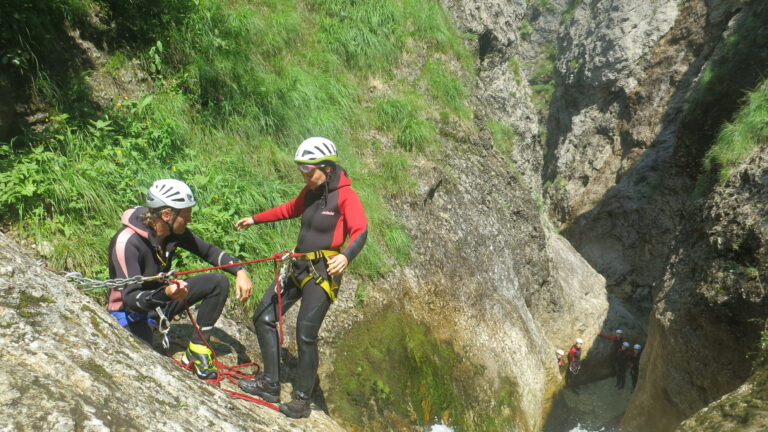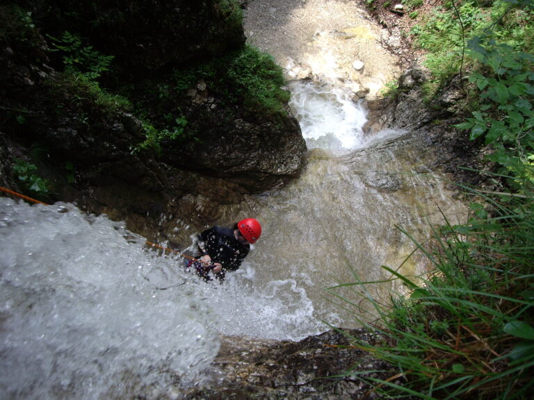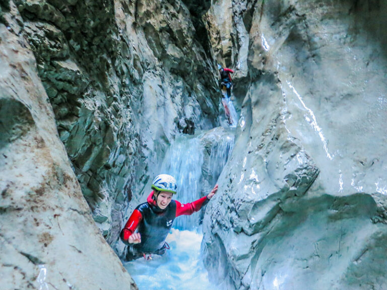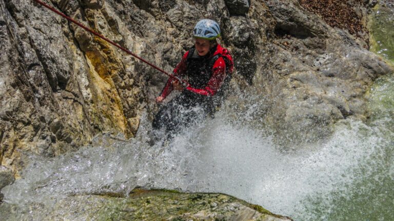 Du willst über deine Grenzen gehen? Deine Komfortzone verlassen und unvergessliche Momente erleben? Beim Canyoning ist all das möglich! Lass dich von atemberaubender Natur verzaubern und betritt die Welt der Schluchten. Wir folgen beim Canyoning einer wasserführenden Schlucht – flussabwärts treffen wir auf ausgeschwemmten Fels, Rutschpassagen und türkisgrüne Tümpel. Auf unserem Weg durch den Canyon überwinden wir verschiedenste Hindernisse. Wir springen in tief ausgeschwemmte Gumpen, seilen uns in atemberaubende Tiefen ab und rutschen in glasklare Becken.